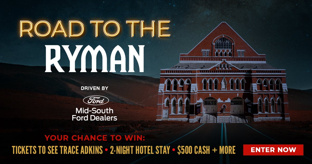 It’s Ford Truck Month, and we’re celebrating in Music City style with a chance to see Trace Adkins take the legendary Ryman stage, courtesy of Mid-South Ford Dealers.